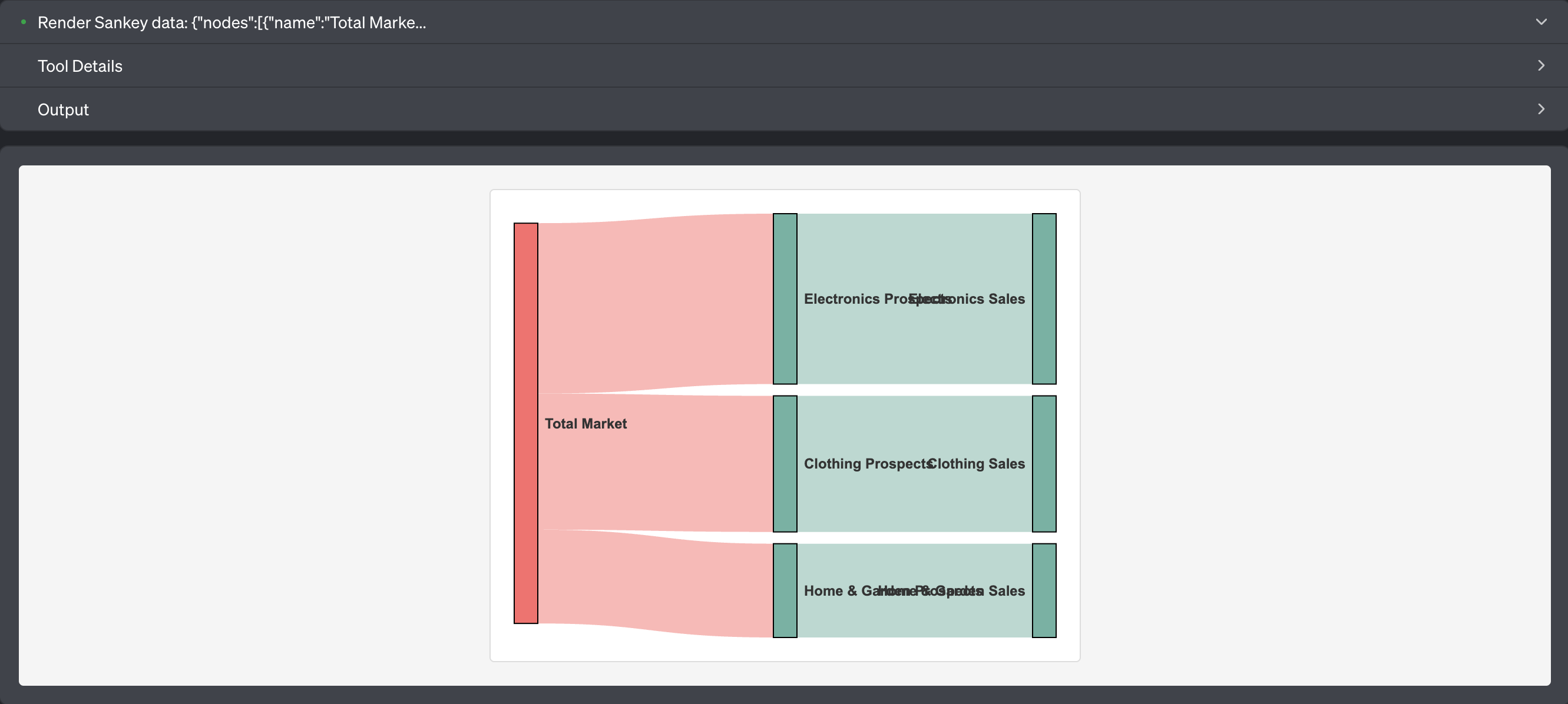 The Sankey diagram represents customer flow through your sales process, with flow thickness proportional to revenue: